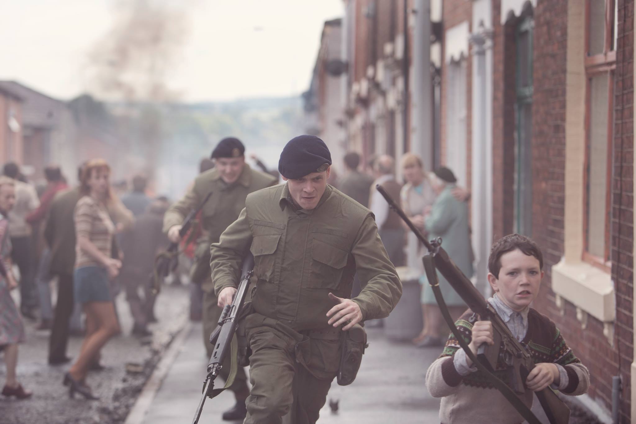 To make the most obvious point, Demange can really do tension. From start to finish, ’71 is absolutely gripping, brilliantly paced and so effective at keeping you on the edge of your seat that you almost forget how exciting it is, until everything calms down and you remember what breathing normally is like. Violence is used judiciously, always realistic but never overtly shocking and never to distract from the central narrative. More refreshingly, for me at least, is that whilst ’71 is a war film, it never falls back on the hackneyed technique of having to spell out to the audience that war is a Bad Thing. It takes that fact for granted and instead of devoting precious minutes trying to get a message across, Demange and his screenwriter Gregory Burke craft terrific set-pieces, supported by really great sound design, a particular stand out being a foot chase as the disarmed Hook escapes two of the leading IRA gunmen (played by Killian Scott and Martin McCann). The quieter moments are equally as convincing, presenting a community in that’s been left in tatters, although never utterly desperate, retaining their empathy even through the chaos around them.