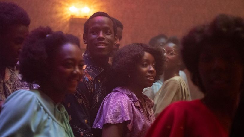Set from dusk til dawn over one night in 80s Ladbroke Grove, Lovers Rock has a large ensemble cast, but the protagonist is really the party itself. We follow its progression as we would a hero’s character arc, seeing how it shifts and transforms as the night progresses and people come together and split apart in various rooms and gardens. That said, there is special interest paid to Martha (Amarah-Jae St Aubyn in a luminous film debut), who has snuck out to this party, and Franklin (Top Boy’s Micheal Ward with some off-the-charts charisma), the charming boy she meets there.