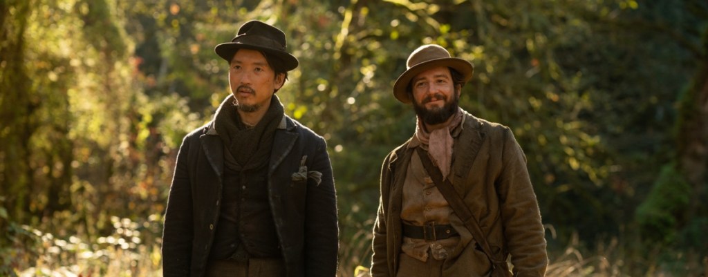 We open in the present day, seeing freight traveling through Oregon on thundering trains and enormous ships, as a dog walker (a nice little cameo for Alia Shawkat) stumbles upon two skeletons who appear to have died while holding hands. From here, we’re gently flung back into the past, where we meet Cookie (John Magaro), a camp cook at the tail end of a fur trapping mission in the Pacific Northwest. Foraging one night in the woods, Cookie runs into King Lu (Orion Lee), an entrepreneurial Chinese immigrant on the run from Russian hunters, and feeds and clothes him, laying the foundations of a beautiful friendship and business partnership.