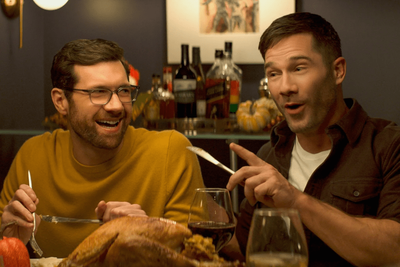 Eichner plays Bobby, a successful and semi-famous gay podcaster in New York. Bobby has reached 40 as a proud singleton, happy with hookups but too attached to his freedom and self-reliance to ever go for a relationship. Like Eichner himself, Bobby’s complete unwillingness to ever tone himself down has gained him loyal fans and friends but also stymied some of his career avenues, so he’s both thrilled and stressed to be the face of a new museum celebrating Queer history. It’s a major responsibility that is clearly weighing on him, a difficulty only made worse by the arrival of the hunky Aaron (Luke Macfarlane).