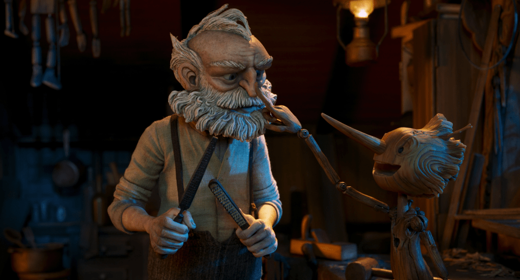 Even outside of the ‘Il Duce’ posters and Ron Perlman-voiced local authoritarian stooge, fascism seeps into the very DNA of this Pinocchio, from the highest levels of government to the pettiest complainers in town, del Toro exploring how it starts, grows, and flourishes. It adds a bracing charge to the story – the moment in which Pinocchio (voiced by newcomer Gregory Mann) transforms into a donkey doesn’t appear here, but there is instead a scene in which he goes through military training, a brilliant touch that makes del Toro’s thesis clear without beating you over the head.