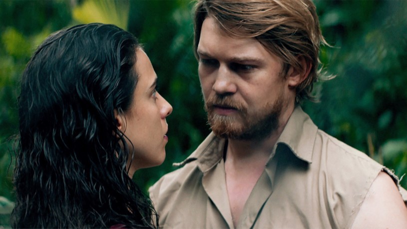 In keeping with the book, our heroine here is Trish Johnson (Margaret Qualley), an American self-proclaimed journalist lounging around in Nicaragua. She occasionally seems to have an eye on a story, but her editor (a very fun cameo for John C Reilly) wants nothing to do with her, so she’s resorted to selling sex on the side to keep a roof over her head. This fragile existence is thrown for a calamitous loop by the arrival of enigmatic Brit Daniel DeHaven (Joe Alwyn), who claims to work for an oil company but is very clearly a spy. Trish and Daniel are drawn together magnetically, and soon their affair has attracted the attention of various intelligence agencies, forcing the couple to come up with an exit plan and flee to Costa Rica.