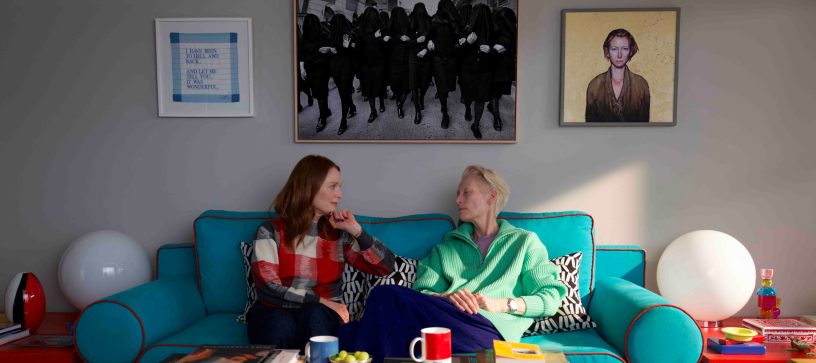 Adapting the novel What Are You Going Through by Sigrid Nunez, Moore and Swinton play Ingrid and Martha, both highly successful New York-based writers (Ingrid of historical fiction, Martha a war correspondent), who were once close friends but lost touch and have now been brought back together by Martha’s diagnosis of likely-terminal cervical cancer. Martha, who has obtained an illegal euthanasia pill, wants Ingrid to travel with her to a very Almodovar-y house in the woods upstate, where Martha plans to, at an unspecified point in the next month, end her life on her terms, with the comfort that she’s not alone, with Ingrid in the room next door.