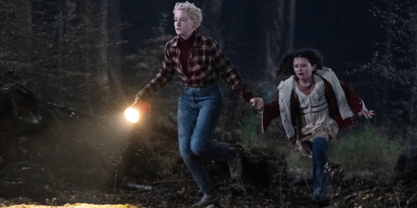 Stepping into Lon Chaney’s shoes/big hairy wolf feet here is Christopher Abbott (in a role once earmarked for Ryan Gosling) as Blake, a devoted dad to his only daughter Ginger (Matilda Firth) whose marriage to journalist Charlotte (Julia Garner) is going through a rough patch. When his long-missing outdoorsman dad is finally declared dead by the state of Oregon, Blake inherits his farmhouse way out in the beautiful but intimidatingly remote wilds of the Pacific Northwest and decides that the best thing for his family will be to up sticks from their city home and spend the summer by the woods that defined his own childhood.