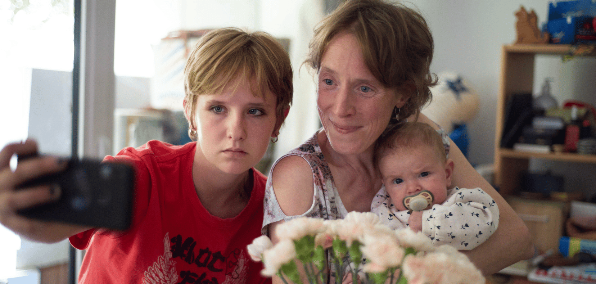 And what of the young fathers and young grandmothers (tellingly, there are zero young grandfathers in the picture, no men willing to take real responsibility) that necessarily form a part of these girls’ worlds? Well, aside from the lovely boyfriend of recovering addict Julie (Elsa Houben), with whom she shares real kindness and patience and practical forward thinking as they get jobs and make plans for living together independently, they’re mostly pieces of shit. Neglectful and violent mothers sit alongside boyfriends who abuse every bit of privilege they’ve got to leave the mothers of their children alone in this world, and it’s heartbreaking to watch the girls debase themselves to ask almost nothing of these should-be family members and still not get it. Most desperate of all is Perla (Lucie Laruelle), who tries everything to get her petty criminal boyfriend to care even a little bit about her and their baby to absolutely no avail.